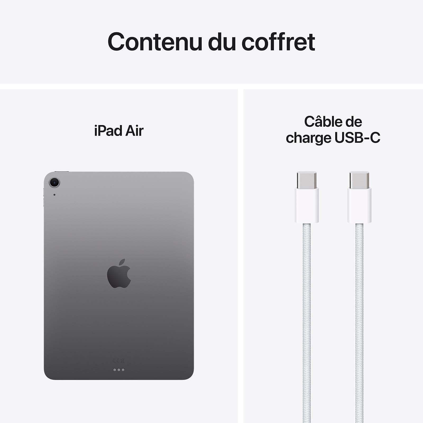 - Apple Pencil et Magic Keyboard : Grâce à l’Apple Pencil Pro, l’iPad Air devient un outil de création immersif et le meilleur support de prise de notes qui soit. L’Apple Pencil (USB-C) est également compatible avec l’iPad Air. Le Magic Keyboard avec trackpad intégré vous offre un excellent confort de frappe, tout en protégeant votre iPad. Accessoires vendus séparément.