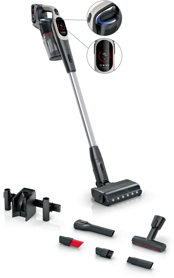 BOSCH Aspirateur à batterie Unlimited 9 Gris : L’Aspirateur à batterie Unlimited 9 Gris est un appareil sans fil puissant et léger, conçu pour un nettoyage efficace et flexible dans toute la maison. Avec sa batterie longue durée, ses multiples accessoires et sa maniabilité optimale, il s’adapte à tous les types de sols et surfaces.