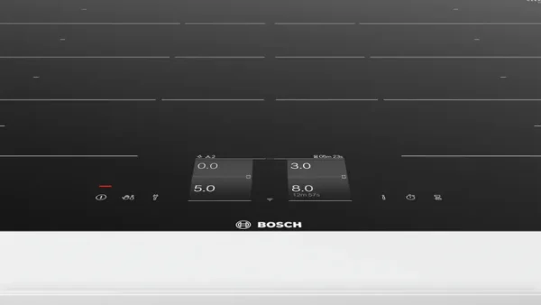 BOSCH Série 8 Table de cuisson à induction 80 cm à fleur de plan : La Série 8 Table de cuisson à induction 80 cm à fleur de plan est l’alliance parfaite entre performance, esthétisme et confort d’utilisation. Conçue pour s’intégrer discrètement et harmonieusement dans votre cuisine, cette plaque à induction au design épuré s’installe à fleur de plan pour un rendu minimaliste et moderne. Dotée de 4 zones de cuisson puissantes, elle s’adapte à tous vos besoins culinaires, du mijotage délicat à la cuisson intense.