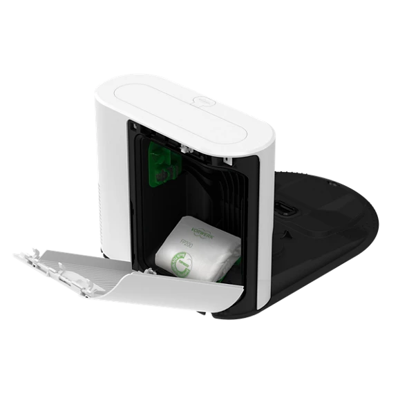 La vraie innovation ? La station RB7 d’autovidage et de recharge : elle vide automatiquement le bac à poussières dans un sac filtre hygiénique certifié TÜV (aucune poussière ne s’échappe lors du retrait du sac), avant de recharger le robot. Vous n’intervenez que tous les quelques mois