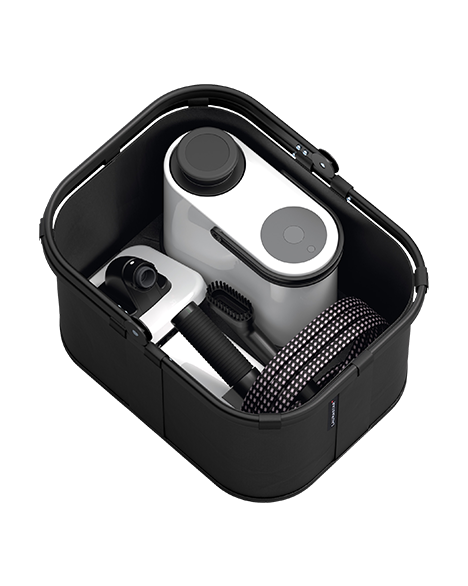 Ergonomique, léger et rapide, le Laurastar Aura a un temps de chauffe d’environ 60 secondes, un réservoir à eau de 0,5 L filtré, une pression de vapeur constante de 2,7 bar, et une puissance de 1 900 W. Il est fourni avec une gamme d’accessoires complète : embouts spécialisés (multi-usage, textile, surfaces), capsule parfumée naturelle, microfibres, brosse clip-on, gant thermoprotecteur, etc. Le corps de l’appareil pèse environ 3,58 kg, et il est accompagné d’un “pad” (accessoire de nettoyage) de ~ 1,26 kg, câbles longs pour usage pratique, dimensions conçues pour une maniabilité optimale.